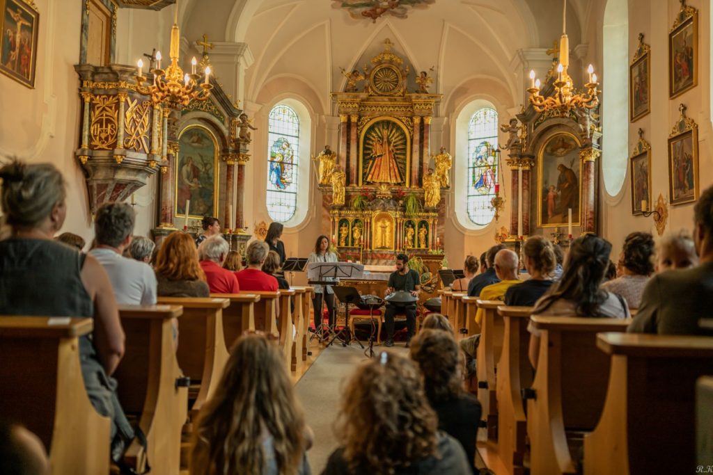 28 June 2022 gallery | final concert: manu delago Manu Delago and the vocal trio "Mad About Lemon" gave us a wonderful final concert in the church in Bschlabs. learn more